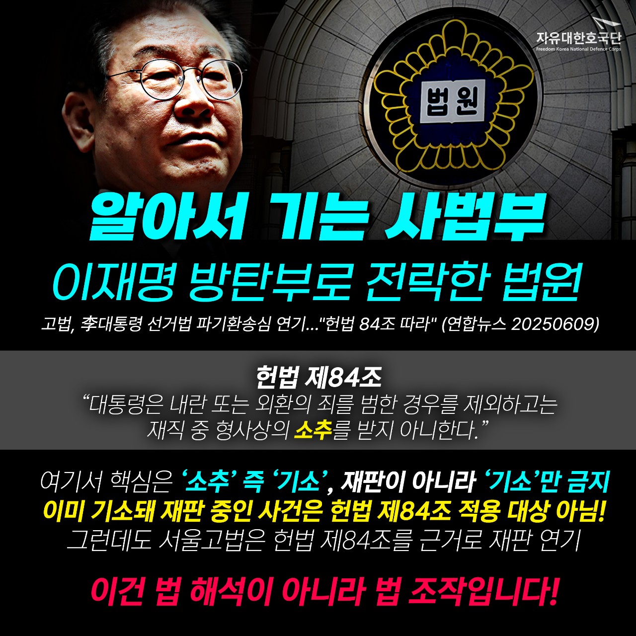 °í¹ý, ì°´ëÅë·É ¼±°Å¹ý ÆÄ±âȯ¼Û½É ¿¬±â¡¦"Çå¹ý 84Á¶ µû¶ó" (¿¬ÇÕ´º½º 20250609)